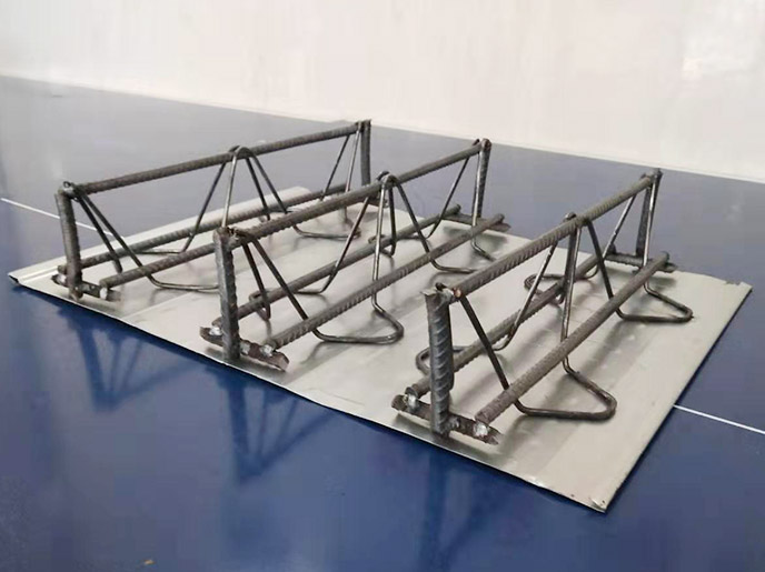 ??????鋼筋桁架樓承板是將樓板中鋼筋在工廠加工成鋼筋桁架,并將鋼筋桁架與底模連接成一體的組合樓承板。根據所使用的底模,鋼筋桁架樓承板分為TD I型和TD II 型兩種類型。I 型底模的縱向肋節(jié)目呈倒“ V ”字型,肋高為4mm,其底模寬度為576 mm;II型底模的縱向肋截面呈倒“V”字型,肋高為2mm,其底模寬度為600mm。
